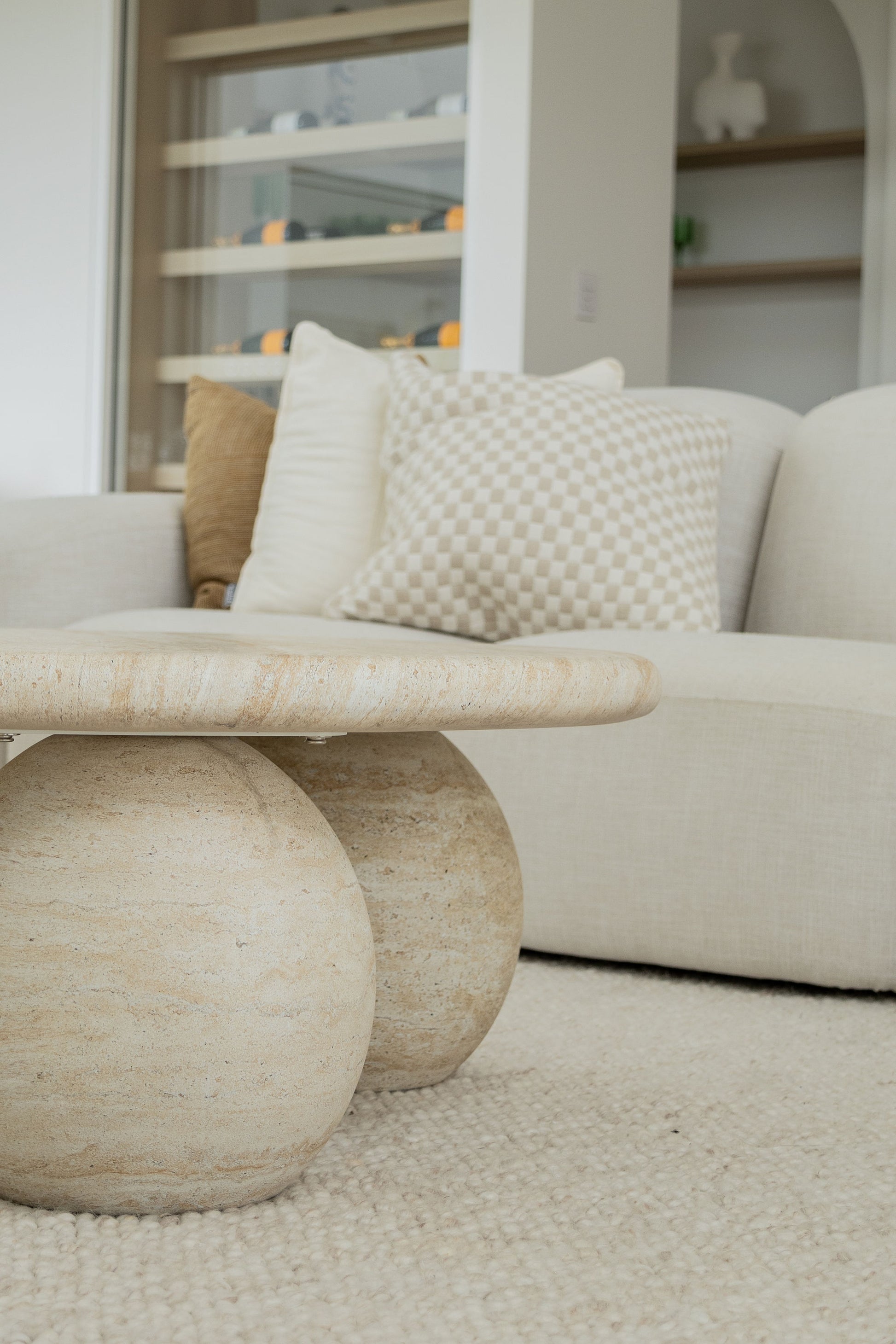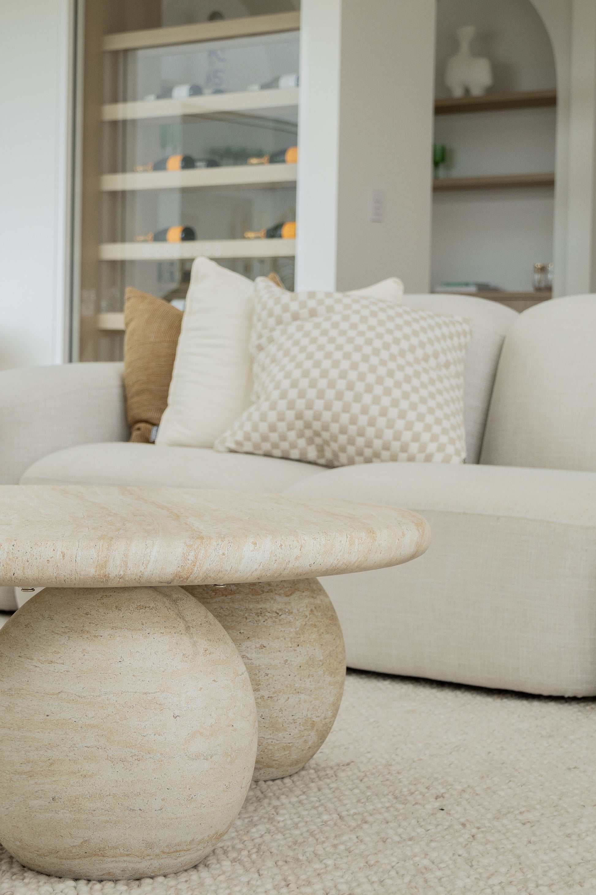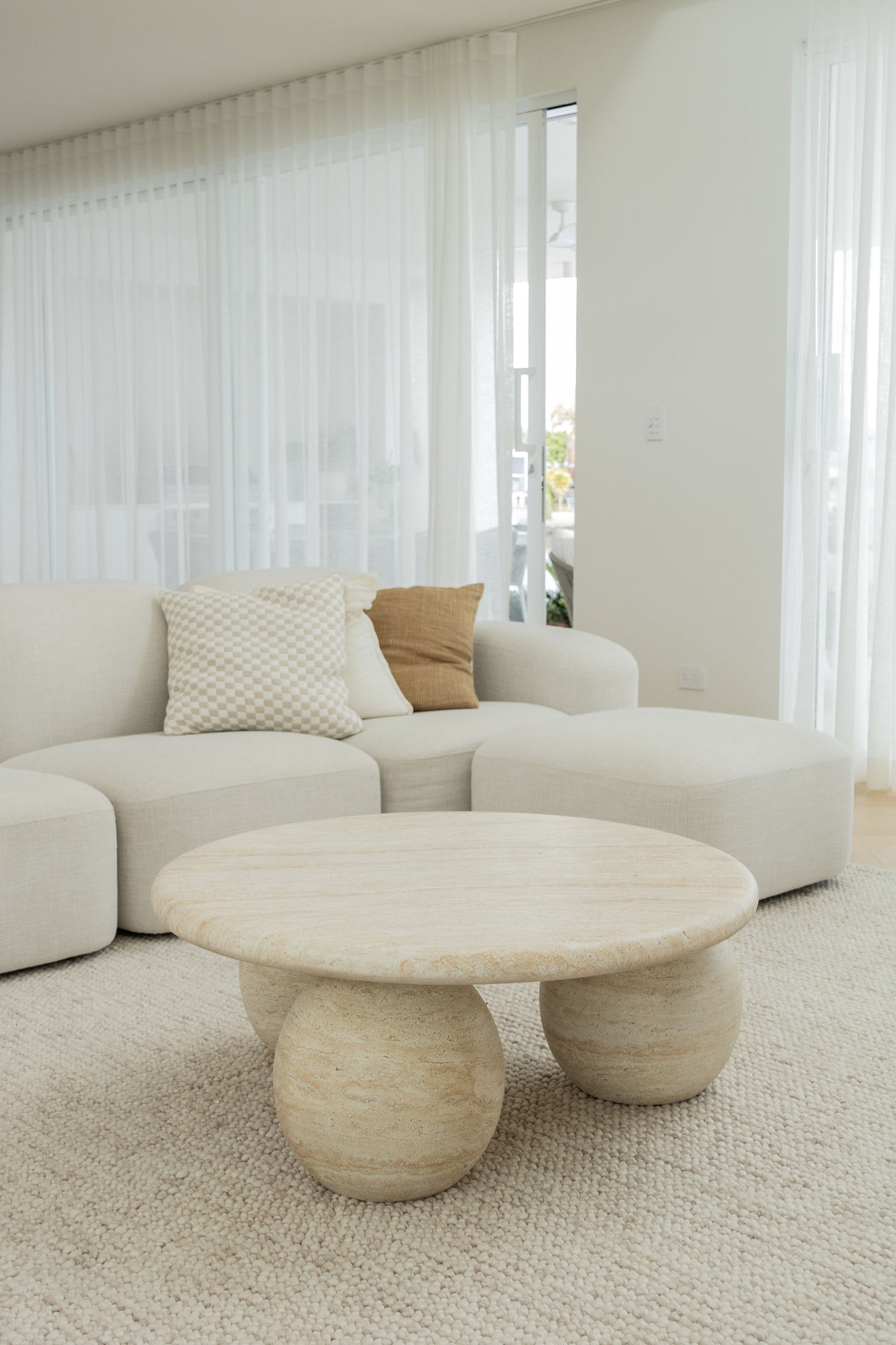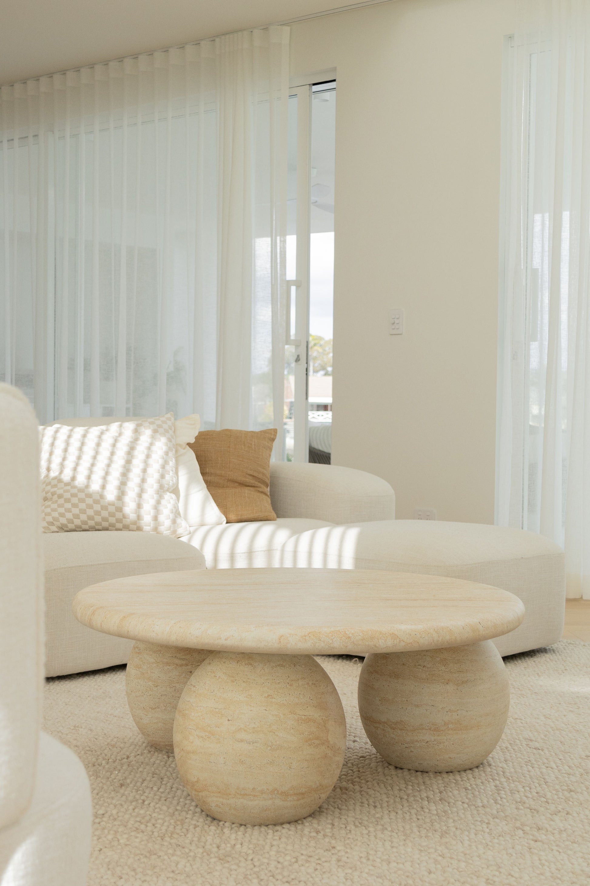 The Priscilla curve coffee table - travertine - Pre order arriving late November