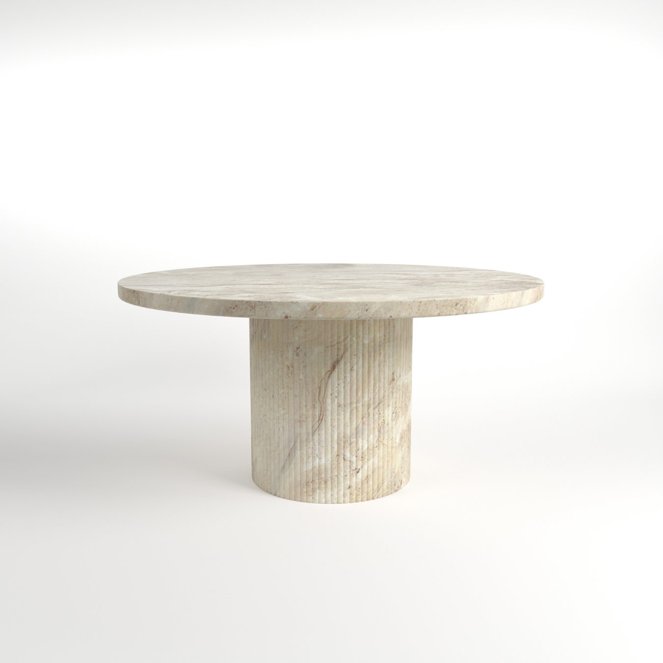 The Amore Dining Table introduces a warm, refined presence to any dining space. Crafted with a solid concrete core and finished in our Mirage Marble, it pairs a soft, organic stone finish with a beautifully fluted base. The gentle movement in the marble creates a sense of depth and calm, making each piece naturally distinctive.
