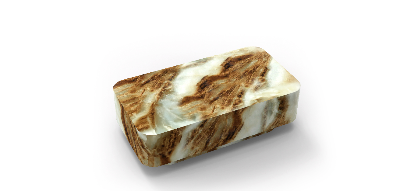 The Goldie Coffee Table brings a rich sense of warmth and texture to any living space. Crafted with a solid concrete core and finished in our Latte Marble, it features flowing caramel and cream tones with soft, natural veining throughout. Its elongated, low-profile design gives it a calm, grounded presence, while the rounded edges keep the look soft and contemporary.
