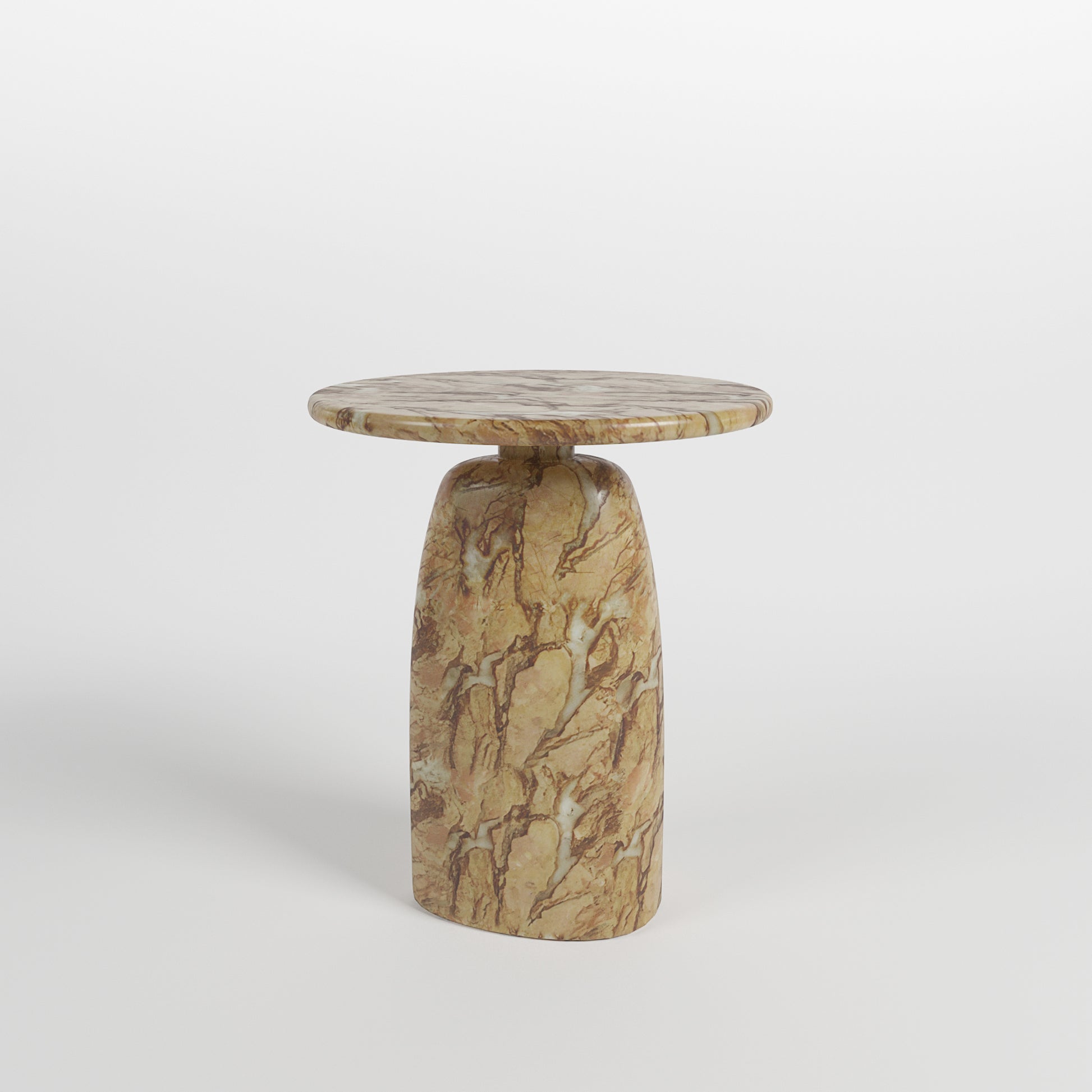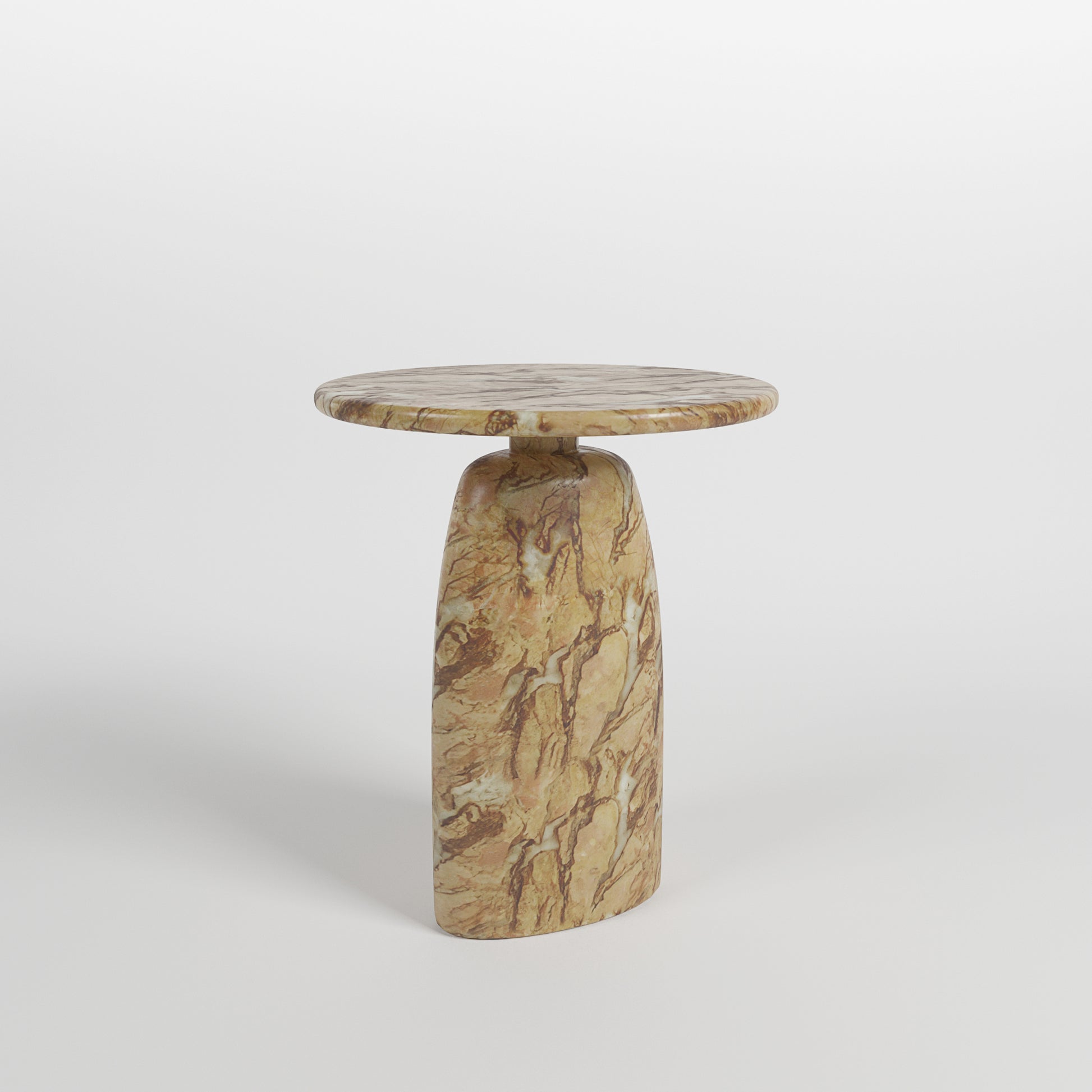 The Juliet Side Table in Tigers Eye Marble showcases caramel and amber veining that creates a naturally unique finish. Its gentle curves and slim profile bring a refined presence to any space.
