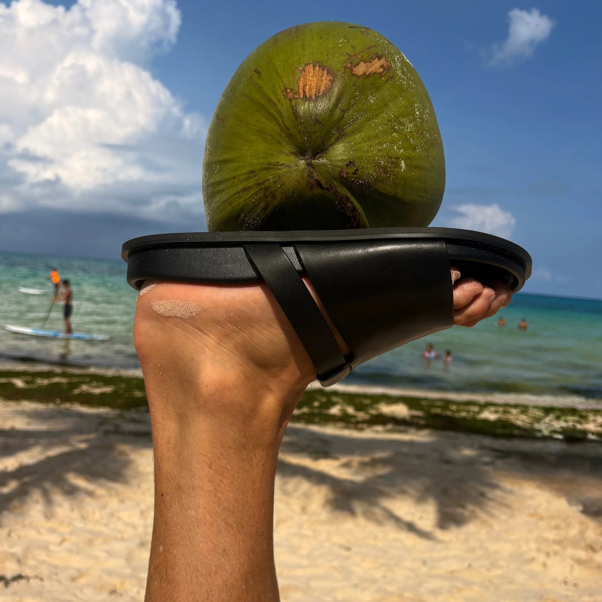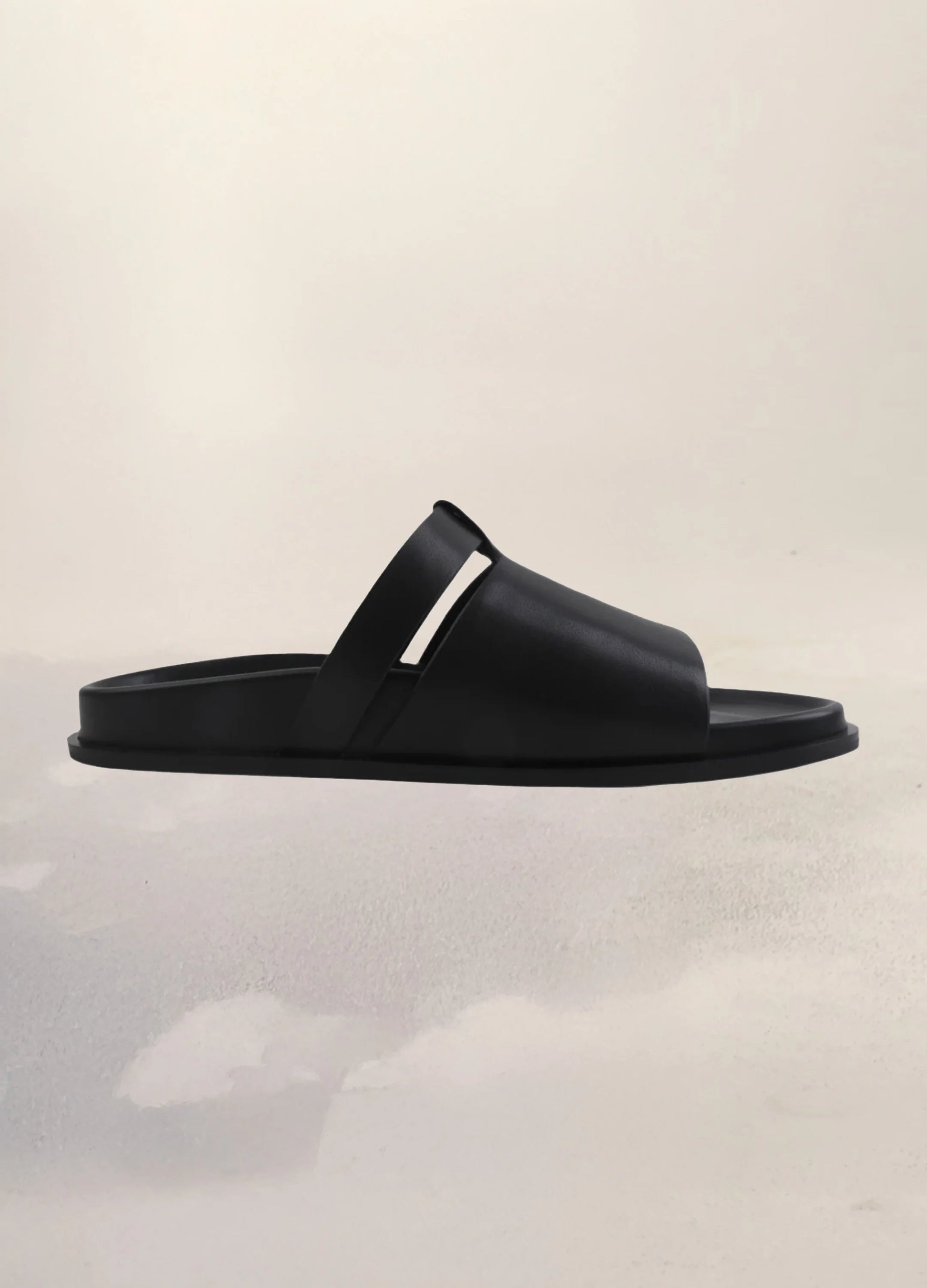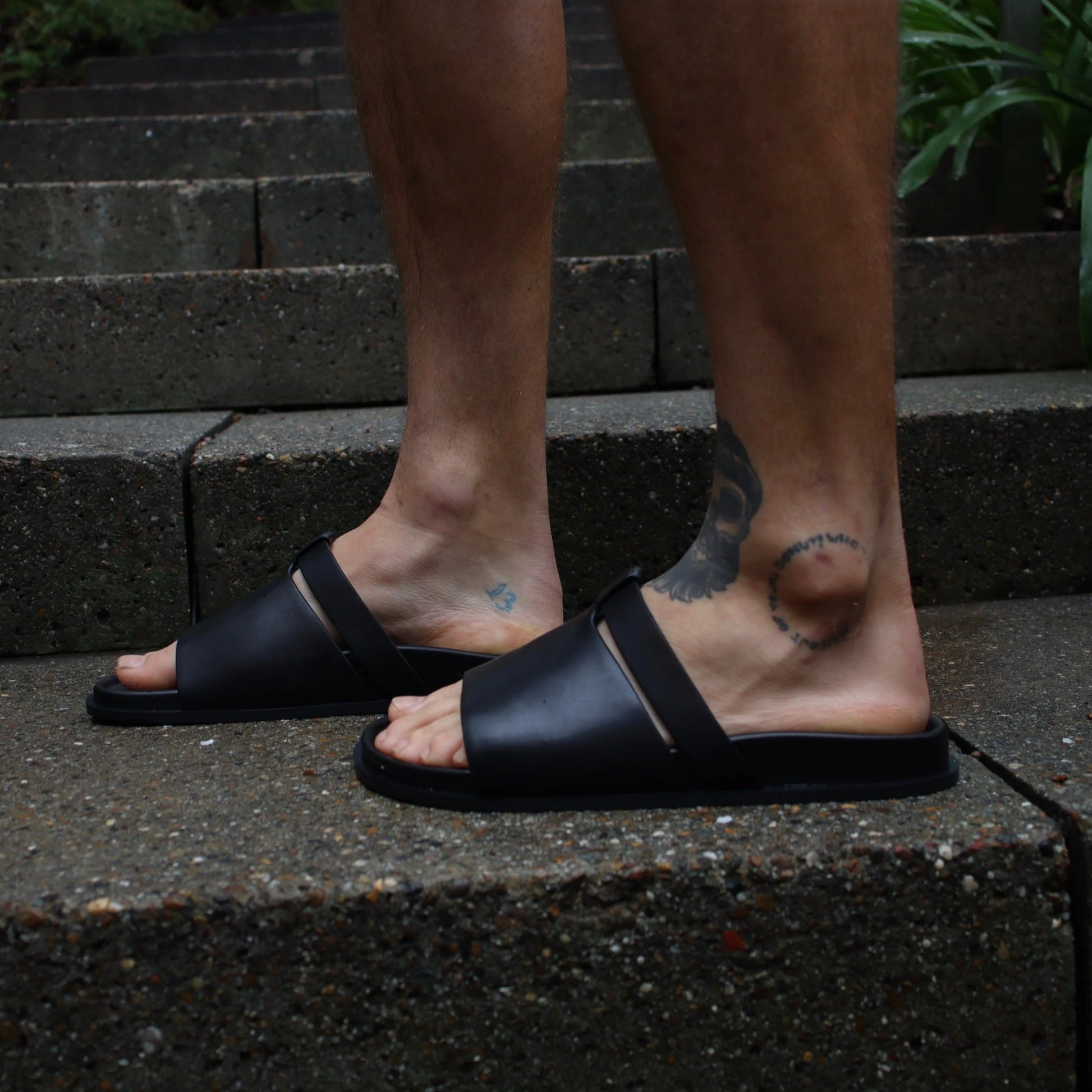 Golden Hour Footwear: Introducing JUN— Our men's leather slide. A perfect fusion of comfort, style, and craftsmanship. Handmade from premium calfskin leather, JUN offers a luxurious feel and an ergonomic design that cradles your foot with every step. The sleek black colour and durable rubber sole ensure not only a refined look but also lasting comfort and support. Whether you're lounging at home or stepping out for a casual outing, JUN is the ultimate choice for the modern man who values both style and practicality.