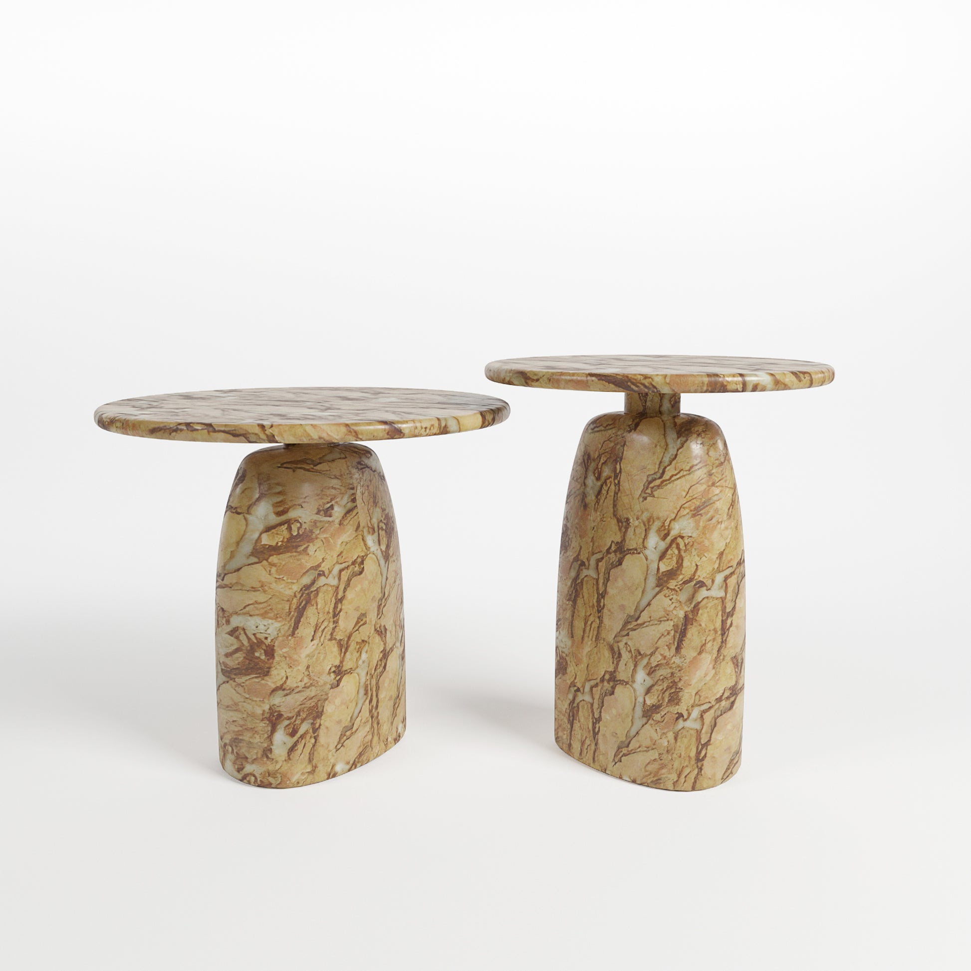The Romeo Side Table brings warmth and character through its rounded form and striking Tiger Eye Marble. A rich blend of caramel and deep amber veining that makes every piece one-of-a-kind.