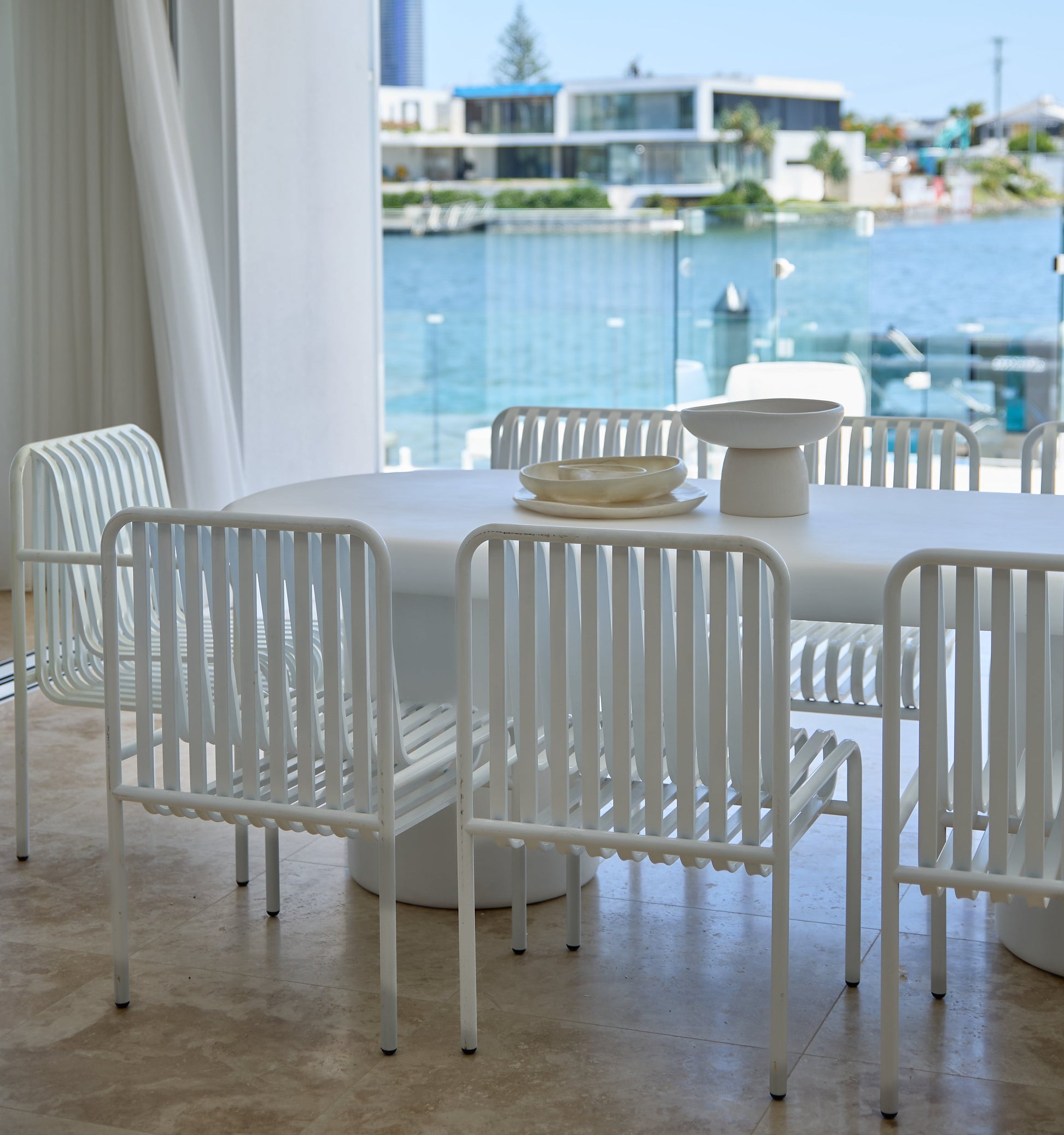 Minimalist in form, yet striking in presence, the Aurora Dining Chair is a celebration of modern design and durability. Designed exclusively by P&R Styling, this piece is crafted from powder-coated metal, offering a smooth finish, subtle curves, and is effortlessly stylish.