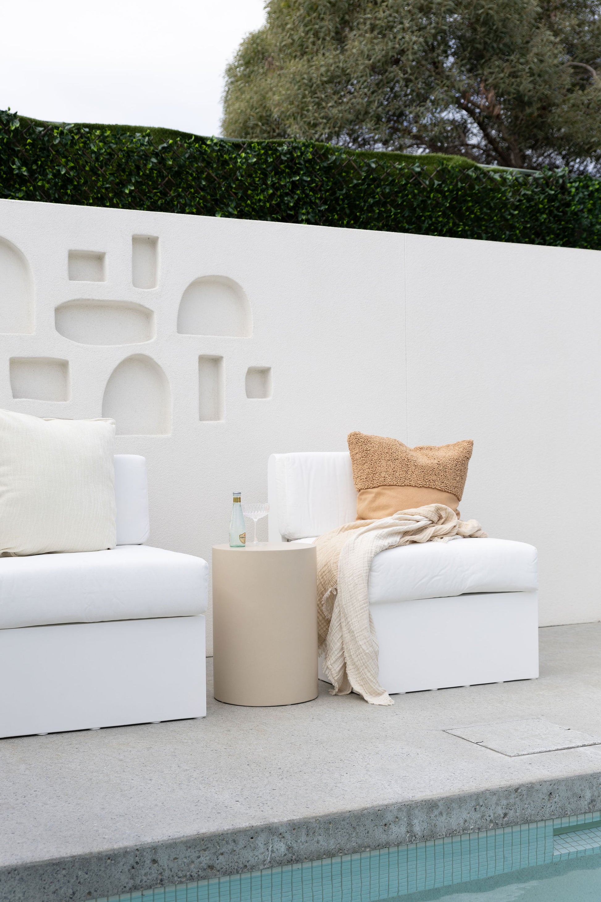 The Concrete Log Side Table brings a unique, natural vibe to your outdoor or indoor space. Crafted from concrete and finished in a neutral beige, this side table seamlessly blends coastal appeal with modern design. Its eye-catching log-inspired shape make it the perfect addition to any contemporary living area or outdoor space.