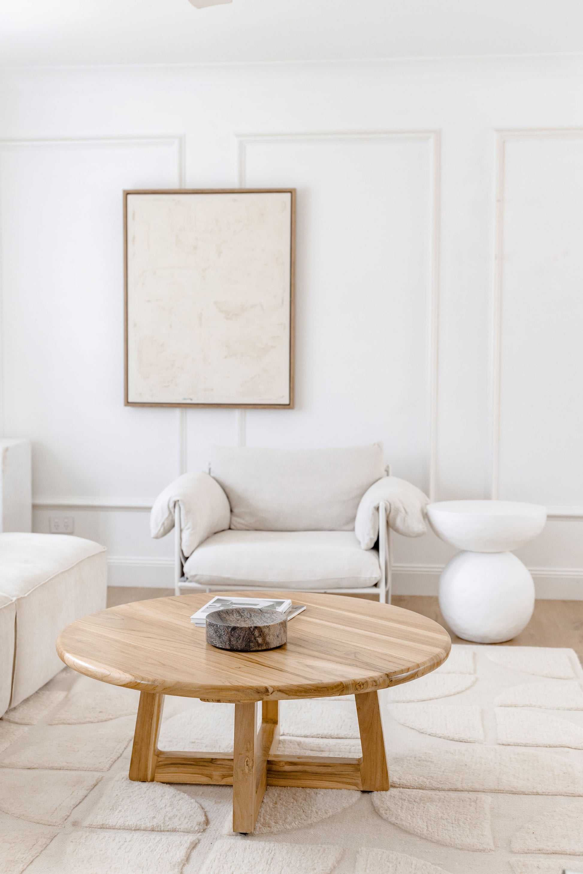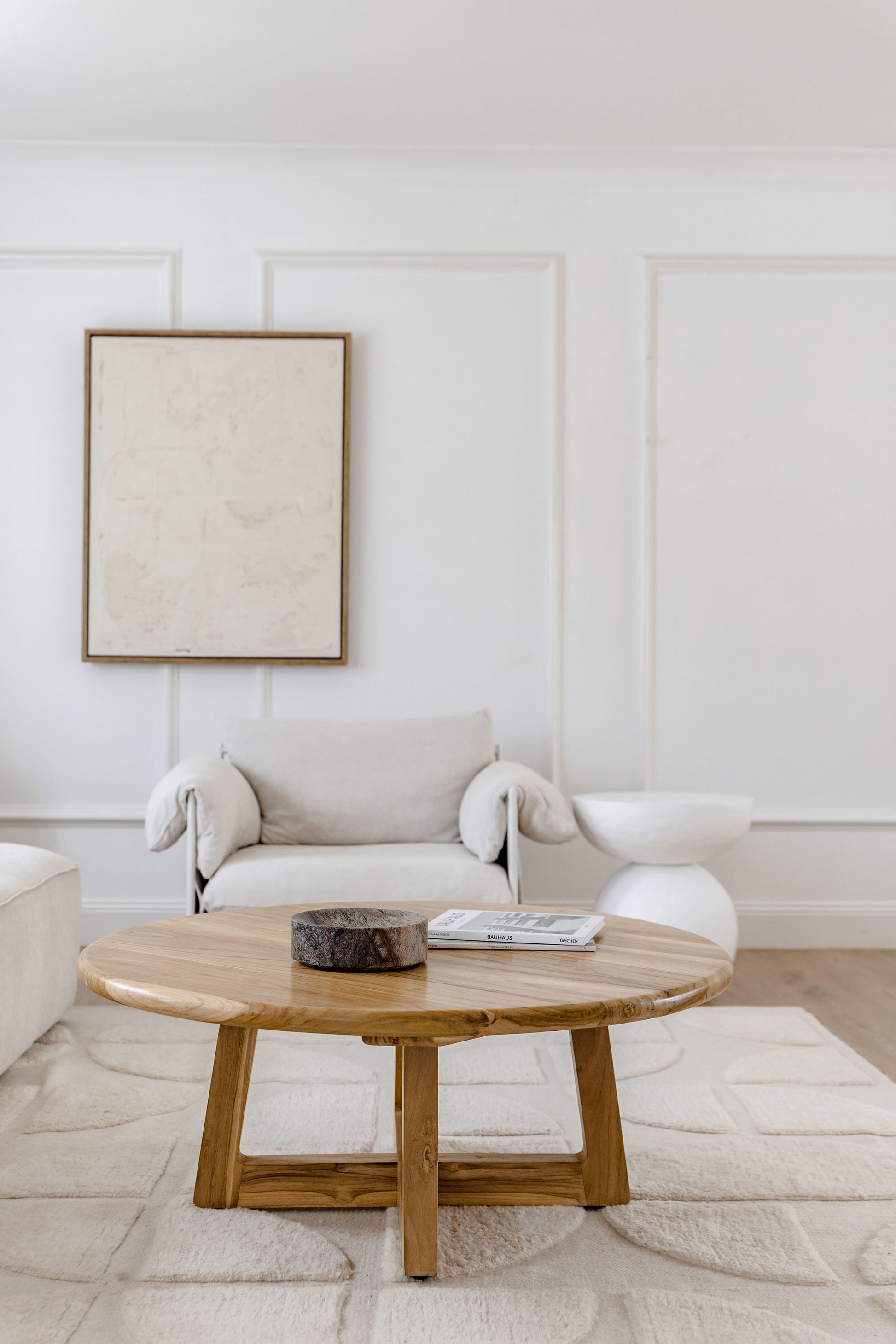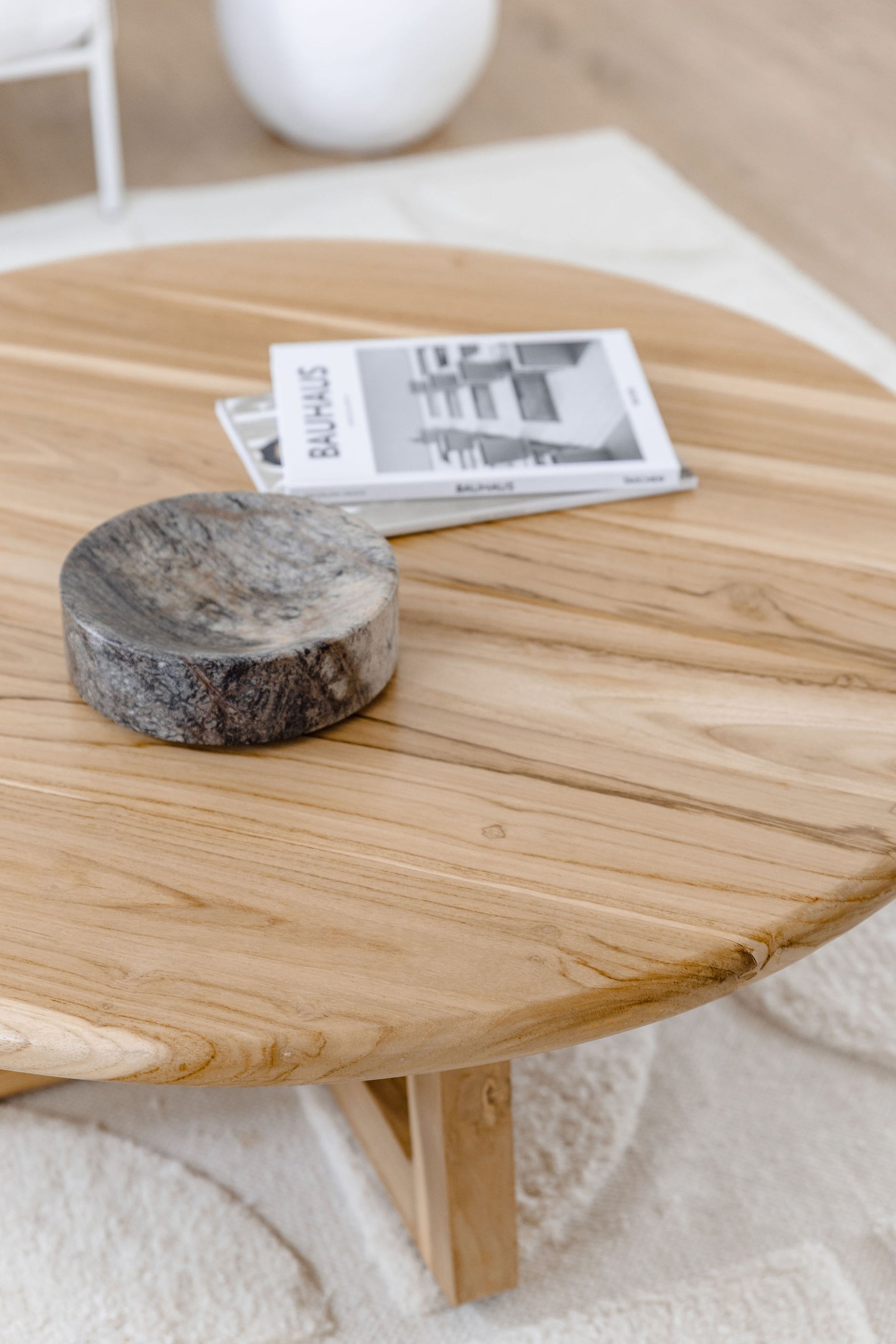 The Ownley Round Coffee Table is a timeless piece that celebrates the natural beauty of solid teak wood. Handcrafted from a single slab, the round tabletop offers organic nature and warmth, highlighting the unique grain and character of each piece.