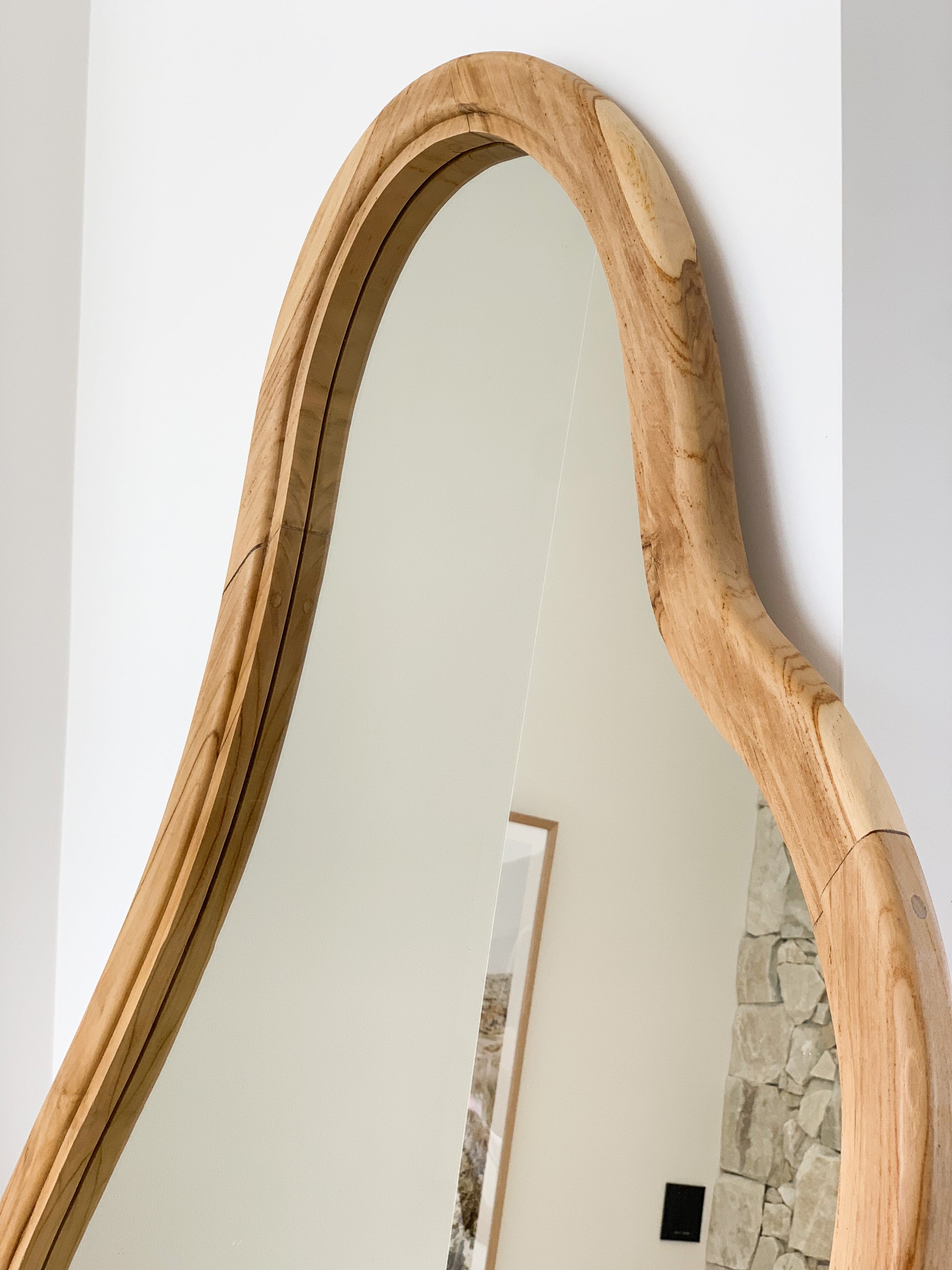 The Viktoria full-length mirror is a striking statement piece, uniquely hand-carved from high-quality teak wood. Its craftsmanship adds a touch of sophistication to any space, making it the perfect addition to your home.